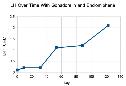 Another factor is that for me at least, more than a month of treatment was required before LH production increased noticeably. Detailed thread here. In this protocol a SERM is definitely necessary because otherwise you still have significant negative feedback from estradiol at the pituitary.