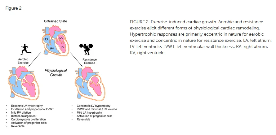 Cardiac remodeling, I am living proof. From my last US HEART W CONTRAST AND 3D ANALYSIS IF........Concentric left ventricular remodeling. In 2010 the guy doing an ultra sound on my hear noticed the left ventricle. They did not want to do surgery on my knee. A meeting of cardiologist determined this was related to powerlifting and was a normal adaptation to the heavy weight I was lifting. Again in 2020 the same finding. I don't compete but still do weight training