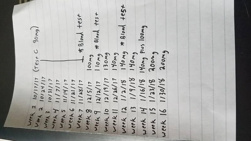 As far as what to start at I've already been on at least 120 Test C for more then 40 days easy (if you read my original post) and my test numbers weren't even up that much from my original numbers. So 150 split a week? I could of done that but as I said I don't see people on 200 complaining. So figured why not try it, if I don't like it I'll lower it a little.