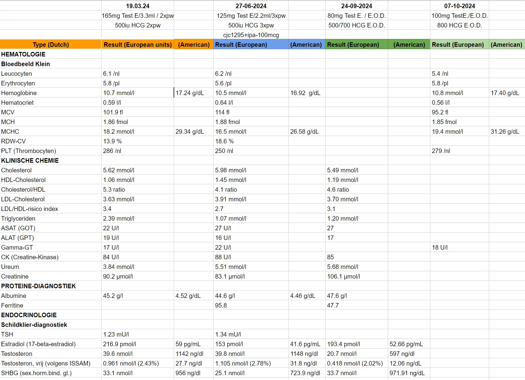 And yeah the hematocrit. I agree it should be lower ideally. I'll keep on trying to bring it down but getting it back to this amount is a win for me. Plus, I suspect I already had a relatively higher hematocrit before, though I don't have the blood work to back that suspicion up unfortunately. I'm in the gym a lot recently, I hope this will also help bring it down further.