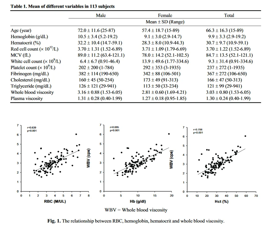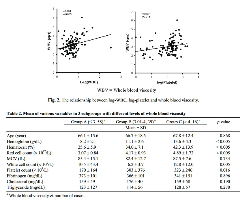 All the blood cell components, but not the plasma proteins detected above, could affect whole blood viscosity, and when patients are with high leukocytotic and thrombocytosis, impaired blood viscoity should also be considered to obtain appropriate clinical management. BACKGROUND Blood viscosity...