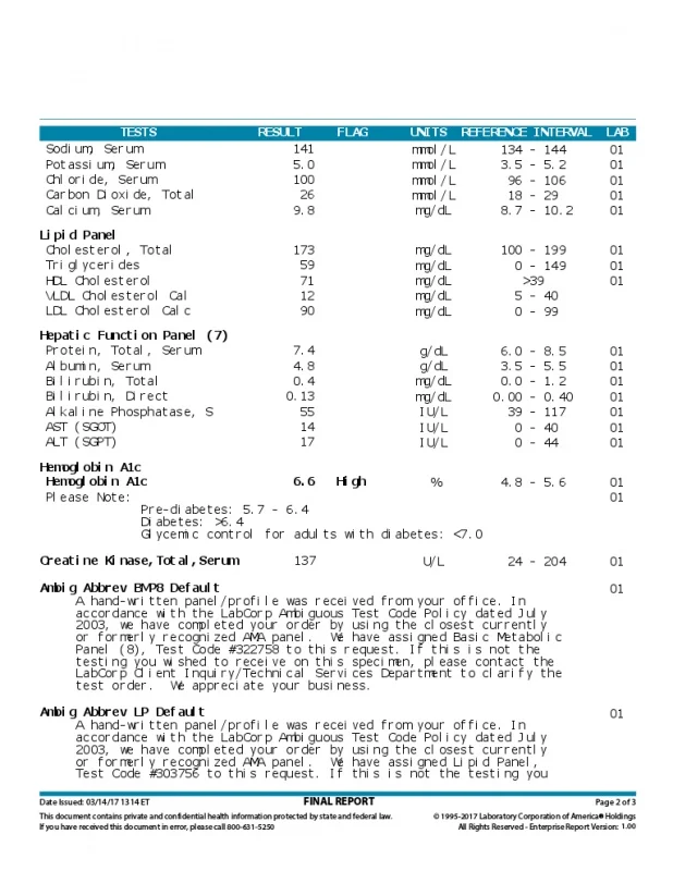 A1C came down even further. Originally I was a 13. I got it down to a 7 (no meds) and im now a 6.6.