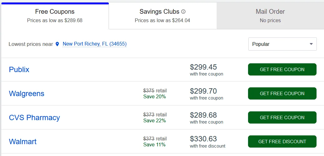 Ok, I went and looked and the price is discounted rate with my insurance. So if you are retail then GoodRx still better than $383. Sad the difference between insurance and retail.