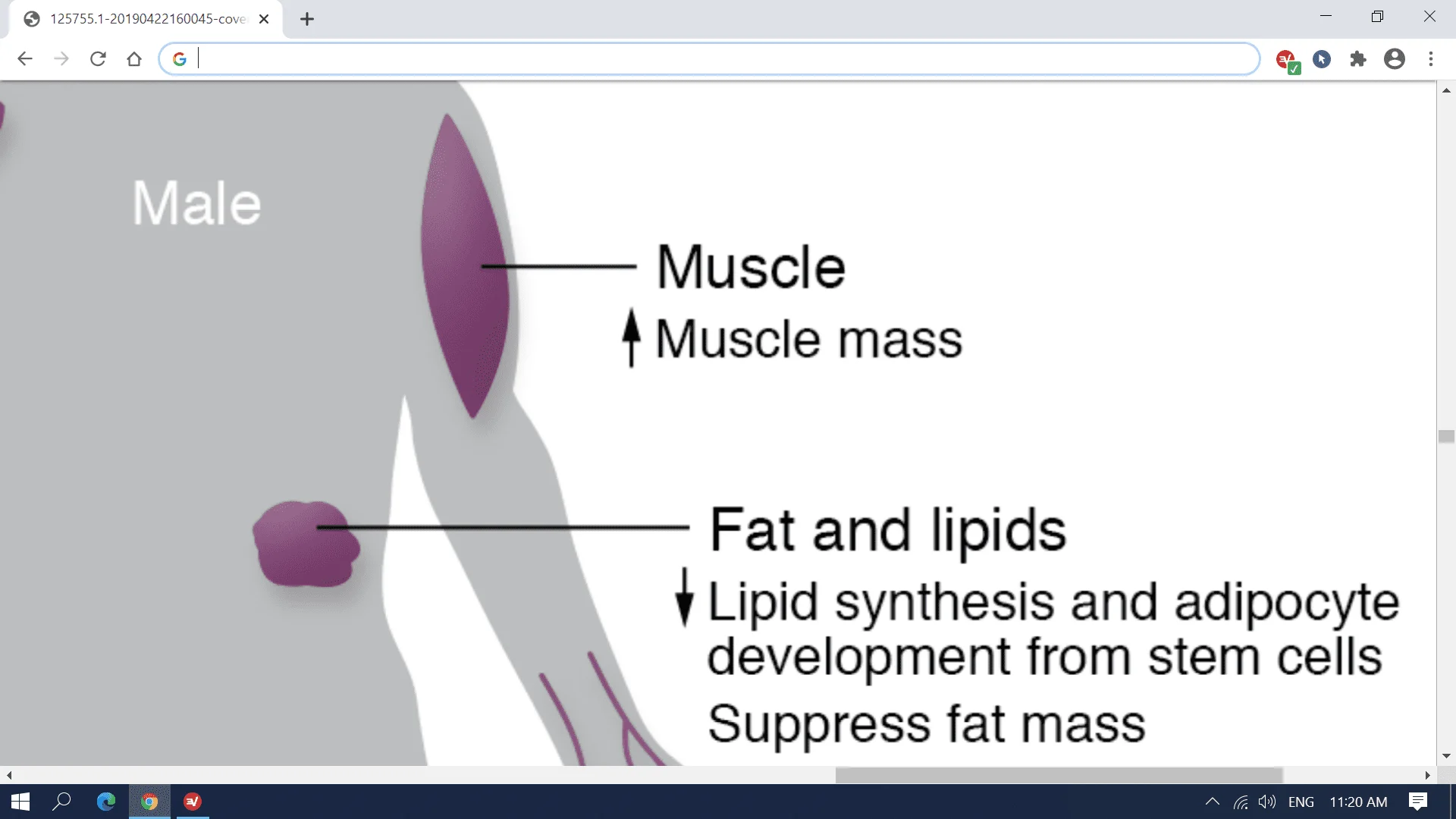 Estrogen may play a very important role in the promotion of an anabolic state by affecting glucose utilization in muscle tissue. This occurs via altering of the level of available glucose 6-phosphate dehydrogenase, an enzyme directly tied to the use of glucose for muscle tissue growth and recuperation.27 28 More specifically, G6PD is a vital part of the pentose phosphate pathway, which is integral in determining the rate nucleic acids and lipids are to be synthesized in cells for tissue repair. During the period of regeneration after skeletal muscle damage, levels of G6PD are shown to rise dramatically, which is believed to represent a mechanism for the body to enhance recovery when needed. Surprisingly, we find that estrogen is directly tied to the level of G6PD that is to be made available to cells in this recovery window.
