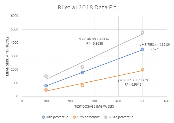 This is going back to maybe 2013-2014 at the Low T Center. I was started around 200, then 220, then 250 mg/week of Test Cyp. I was always 500-600 ng/dl so we finally settled on 280mg/wk. That put me where my RBC was low enough to never worry and no need for an AI.
