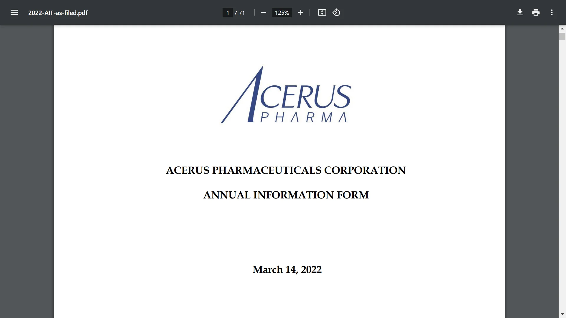 *The Corporation initially made minor modifications to the manufacturing process that appeared to have resolved the previously identified issues and has produced a batch of Natesto® (the “Revised Batch”).While Acerus believed the changes would have been classified by Health Canada as level III, thereby requiring only an annual notification update to Health Canada and allowing for product to be released in Q4-2019, Health Canada, after much deliberation, classified the modifications as level I, requiring the submission of a Supplemental New Drug Submission (“SNDS”) prior to the release of the Revised Batch in the Canadian market. Ultimately, the issue was resolved by the Corporation providing an internal corrective action plan in February 2021. The Corporation notified Health Canada of its intention to reactivate the DIN for Natesto® in July 2021.