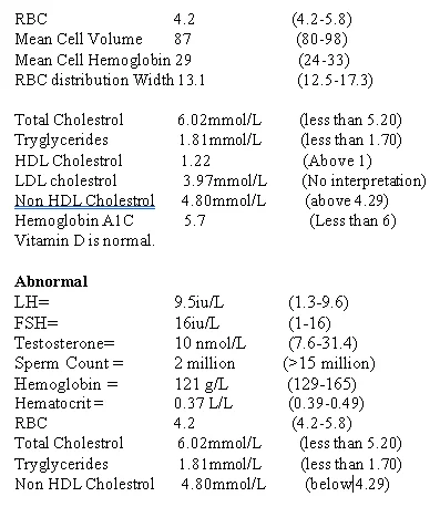 Thanks so much for analysing my report. You got it. What ever u said is 100% correct. I am primary and i also have low sperm count, that is one of the reason why i dint start TRT as i was afraid that my sperm count will go to zero and never return to normal but now i am willing to take calculated risk. My life was normal to be honest as i am single and not actively looking for partner so ED is not bothering me, but i knew my health will screw up if i dont get treatment. So i started doing research. So finally i came to conclusion to use TRT+HCG+FSH treatment and check my semen analysis after 3 months. All i am looking for is to maintain sperm count for IVF. I somehow managing ED with pills. Hopefully my cholestrol and RBC will become normal after my TRT therapy.