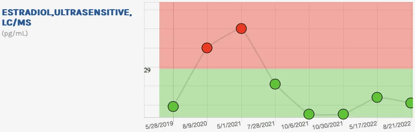 The syndromes should not be further compared to the aforementioned case studies due to the obvious significant distinctions between genetic mutations that have been present since birth and acquired conditions, but it is safe to conclude that reduced ER activity may present normal or above range serum E2 levels and otherwise regular hormonal profiles. It is important to keep in mind the difference in severity of estrogen resistance between the syndromes and these two case studies, as the effects on serum levels will certainly be less pronounced as a result and will therefore not necessarily show elevation above defined ranges, when accounting for the wide range margins provided for these hormones.