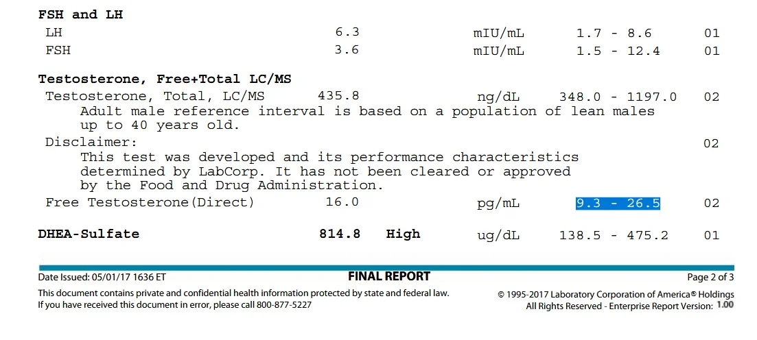 Response from LabCorp About Their Incorrect Unit Usages For Their Free Testosterone - Direct - Test