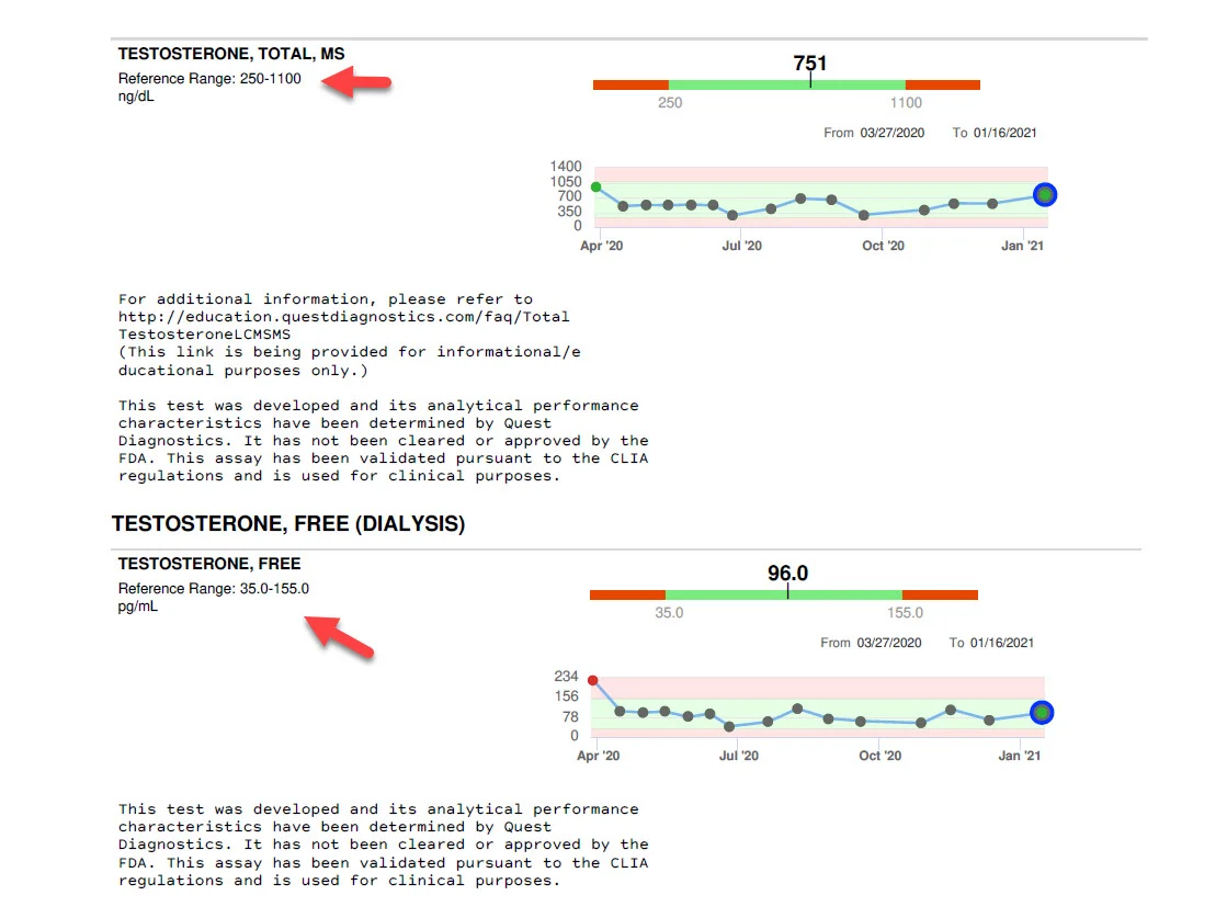 In this example, Total Testosterone is 435.8 ng/dL