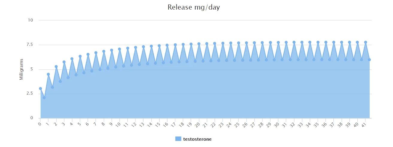 Here is what 1:2 Cyp/Prop blend looks like graphed out over 6 weeks with the daily variation (not sure how accurate Steriodplotter.com is)