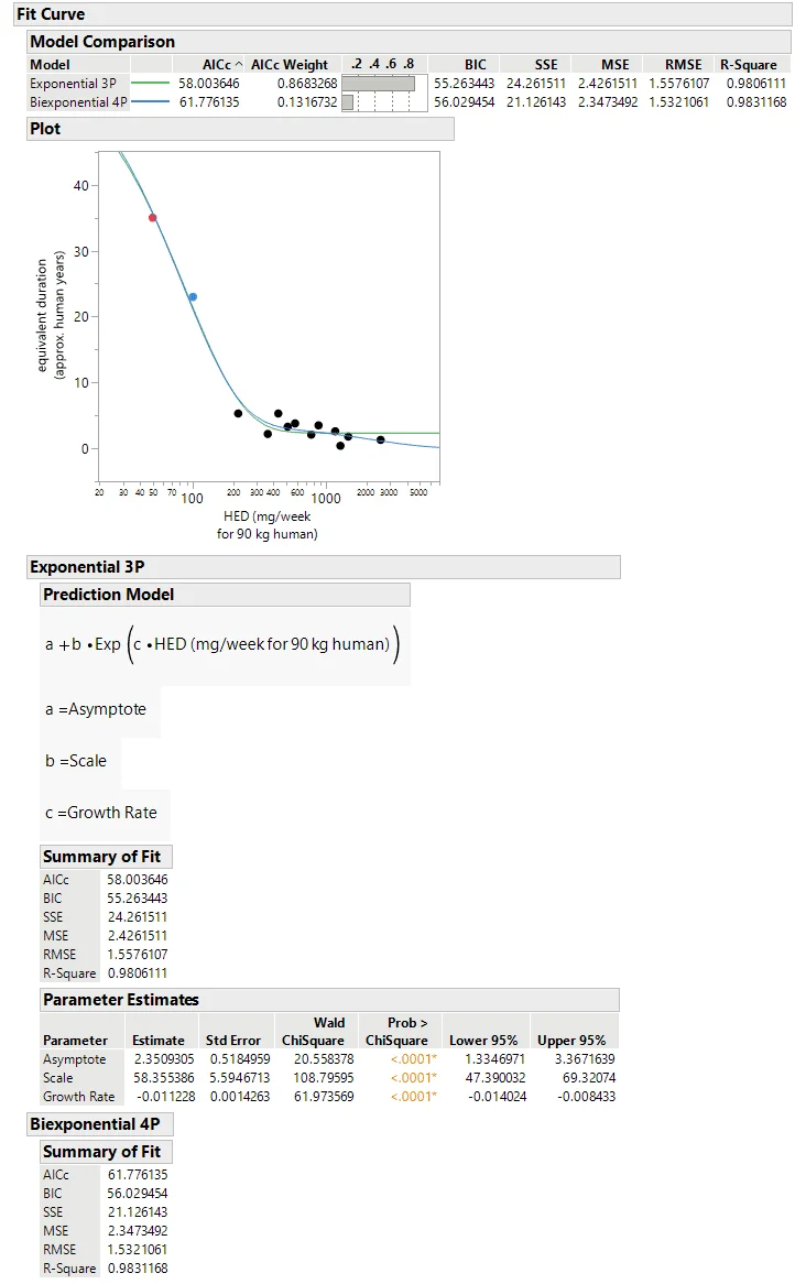 I didn't curate the data so its interesting that the trendline actually fits as well as it does. Higher HED with less duration indicates toxicity just like lower HED at higher duration. As other studies have suggested its the product of dose and duration (cumulative dose) that may really be the important factor.