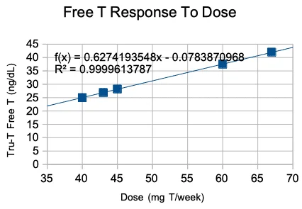 Also, what do you make of the above phenomenon, where TT (fT aside for now) isn’t scaling linearly at all with respect to dosage? (TT is just as high now as it was on 140 mg / wk, and this is not accounted for by difference in injection frequency (i.e. measuring at lower troughs)).