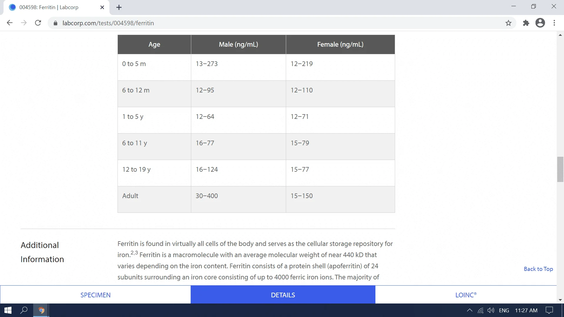 Adult reference range 30-400 ng/mL